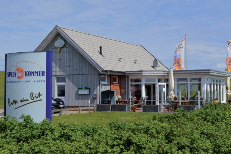 Direkt hinter dem Deich am Hafen Everschopsiel von Tetenbüll liegt das kleine Restaurant SPIESKOMMER, in dem man Fischbrötchen auf die Hand, aber auch leckere Fleisch- und Fischgerichte, Salate etc. bekommt.